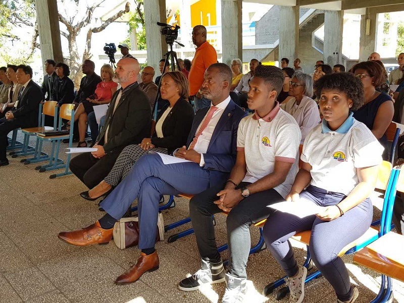 WILLEMSTAD - Ministerio di Enseñansa, Siensia, Kultura & Deporte huntu Ministerio di Desaroyo Ekonómiko, Aqualectra i China Machinery Engineering Corporation (CMEC-group) a hasi e entrega simbóliko di e promé panelnan solar na Skol Avansá Amador Nita na Parera.